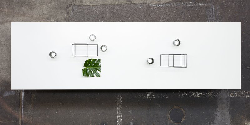 Weißes Blockbuffet mit integrierten Regalkästen in Eiche
