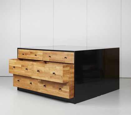 Schwarzes Blockbuffet mit integrierten Schubladen in Eiche