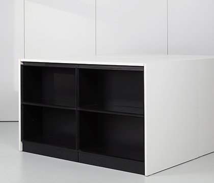 Weißes Blockbuffet mit integrierten Regalkästen in Schwarz