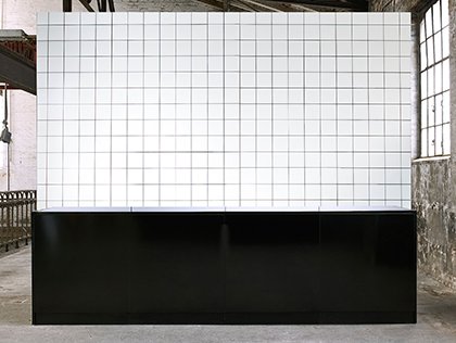 Unser modulares Buffetsystem. Nicht nur die Breite kann flexibel zusammengestellt werden (160/80 cm), auch die Verkleidung. Unter der Arbeitsfläche findet sich genug Platz für das Material von Caterern: Barkühlungen, Unterbaukühlschränke, Stauraum oder Aussparungen für z. B. eine Kaffeemaschine finden ohne Probleme Platz. Ergänzend dienen modulare Wandsysteme nicht nur als dekorative Rückwand (hier ein Fliesenspiegel), sondern auch als Raumtrenner, Sichtschutz und Präsentationsfläche für Brandings oder Produkte.