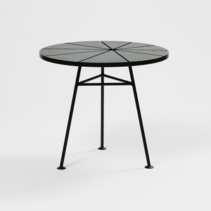 Durch das runde Design und die Einschnitte ist der Bam Bam Table optisch eindeutig von den klassischen Condesa und Acapulco Chairs inspiriert. OK Design fertigt den Bam Bam Small n' Tall Tisch mit einem Rahmen aus schwarzem, pulverbeschichtetem Stahl und einer Tischplatte aus Eichenholz.