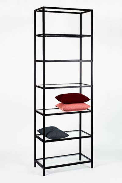 Dieses Regal besticht durch seine robusten Materialien. Gehärtetes Glas und Metall wirken in Kombination sehr offen und luftig. Man kann bei wenig Platz mit einem Element beginnen und es je nach Aufbewahrungsbedarf erweitern. Höhenverstellbare Füße ermöglichen einen stabilen Stand auch auf unebenen Böden.