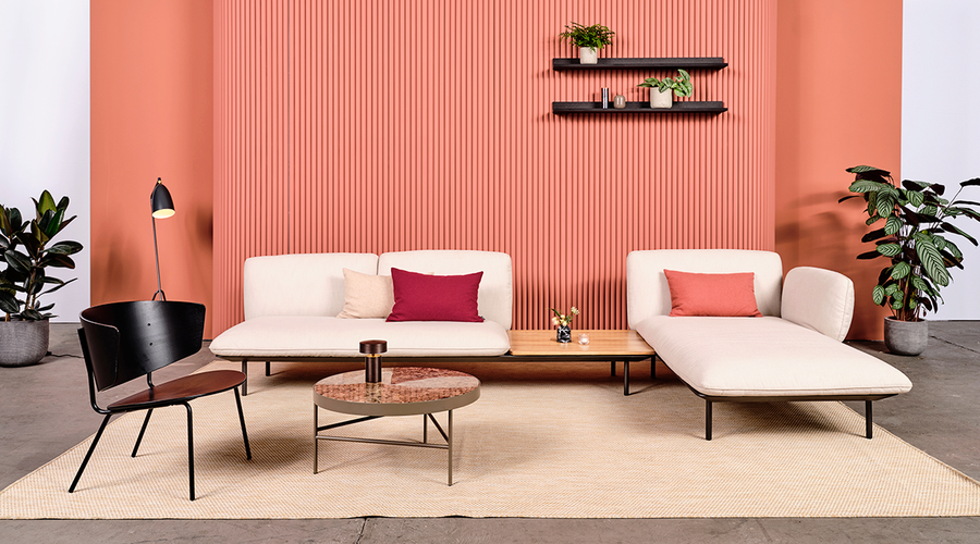 Das Senja Sofa als modulare Lösung für Outdoor Einsätze. Die Kissen sind mit einer Paspel eingefasst und halten dank der luftdurchlässigen, wasserabweisenden Füllung auch einem Regenschauer problemlos stand. Auch die Nähte der Kissenhülle wurden von innen abgedeckt, damit Feuchtigkeit keine Chance hat.