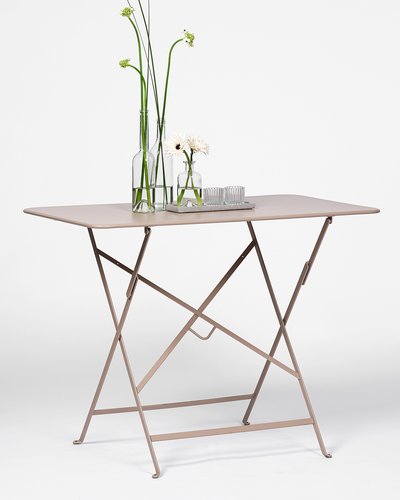 Der Klappstuhl und auch die Tische aus der Fermob Bistro-Kollektion können schnell zusammengeklappt, transportiert und platzsparend verstaut werden. Er besteht aus antikorrosionsbehandeltem, lackiertem und galvanisiertem Eisen. Ein UV-beständiger Pulverlack schützt das Aussehen des Bistro Metallstuhls.
