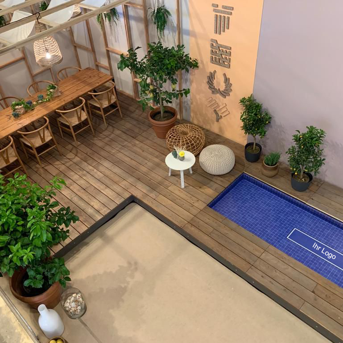 Ein Pool mit Branding bietet eine einzigartige Möglichkeit für Ihre Marken, die Präsenz zu verstärken. Die spiegelnde Wasseroberfläche fungiert als origineller Werbeträger, der die Markenbotschaft in einer unvergesslichen Kulisse widerspiegelt.